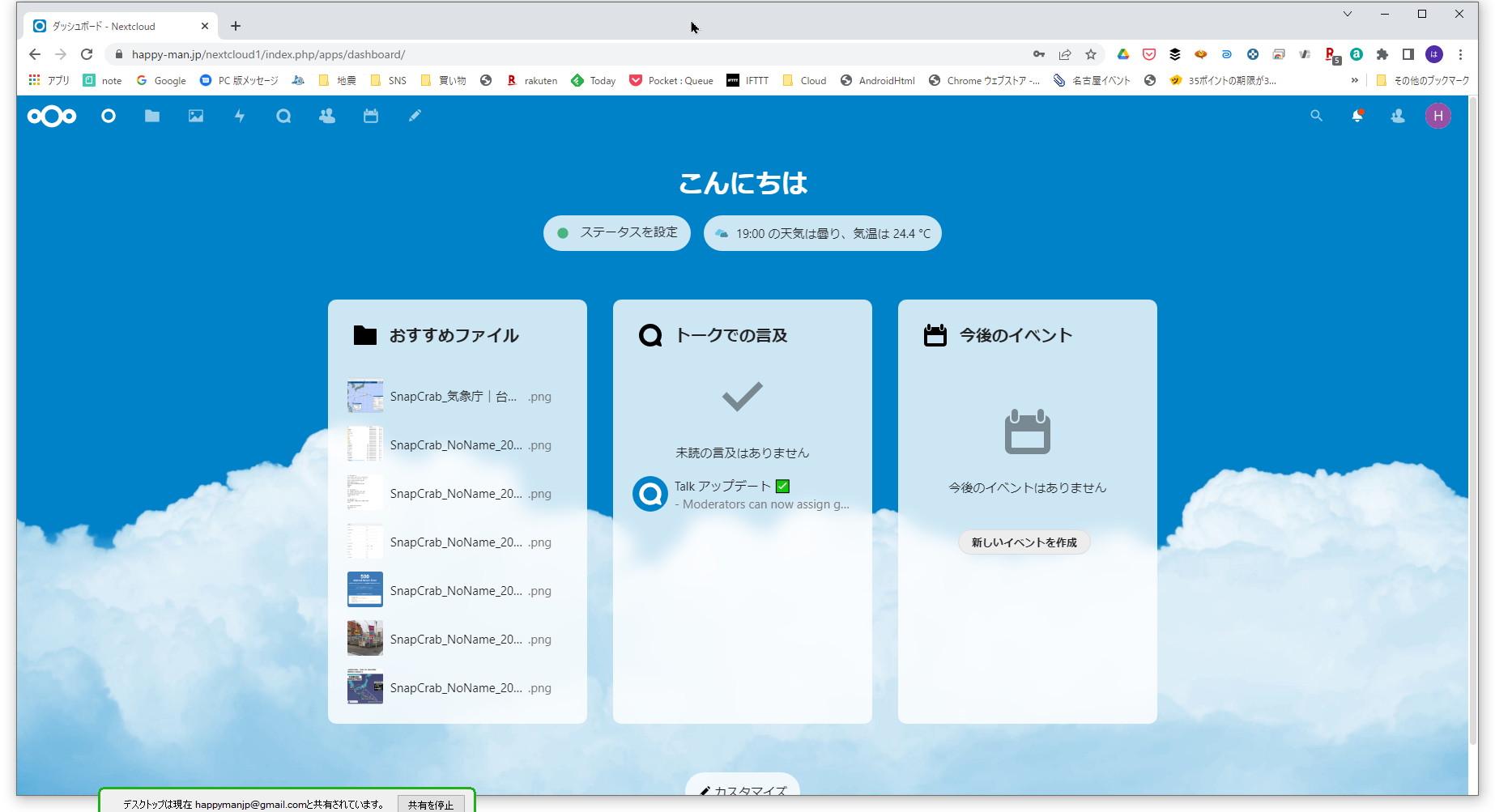 Nextcloud のページを再読み込み(一周する回る矢印アイコンをクリック、または、F5 キーを押)します。